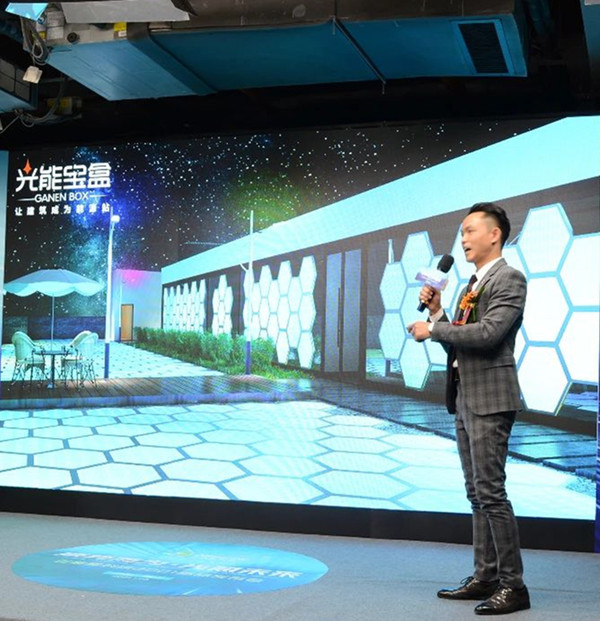 接著是第二款新品發(fā)布—光能寶盒發(fā)電系統(tǒng)。正能量科技研發(fā)成功的光能寶盒發(fā)電系統(tǒng),采用模塊化設(shè)計(jì)、可任意拼裝,對(duì)各種角度的太陽(yáng)光進(jìn)行折射、聚焦后再高效發(fā)電。可便捷安裝于建筑屋頂、外墻、人行廣場(chǎng)、路面等區(qū)域,替代傳統(tǒng)隔熱磚、外墻磚、地板磚。白天發(fā)電自主為整個(gè)建筑提供電能,讓每個(gè)建筑都可變成能源站;晚上還可發(fā)出五顏六色的景觀亮化光線,實(shí)現(xiàn)建筑物的景觀亮化效果。